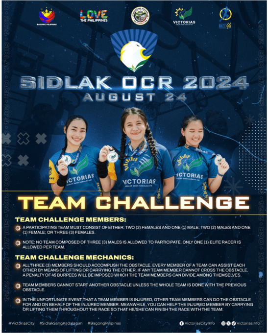Ultimate Obstacle Course Race Challenge in Negros Occidental which was organized by the City of Victorias last September 30, 2023 wherein over 400 participants coming from all over the province and neighboring cities and provinces such as Iloilo, Cebu, Guimaras, Aklan, and Siquijor.Following the resounding success of the inaugural Sidlak OCR, we are currently preparing for this yearโs edition to make it even bigger featuring POSF-standard obstacles. With the goal to entice more racers from all over the country, we have invited decorated and champion athletes from the Philippine National Team.